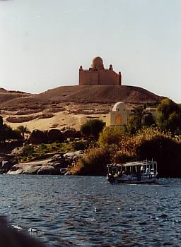 Hohes Ansehen als idealen Wintererholungsort genießt Assuan auch bei vielen hohen Persönlichkeiten. Am rötlichgelben Steilhang der westlichen Wüste blickt man vom Nil aus, auf einen Hügel mit dem Mausoleum des Agha Khan. Dieses religiöse Oberhaupt der schiitischen Ismaeliten und Nachfahre des Assassinen-Fürstenhauses, der hier in Assuan nicht nur seine Villa erbauen ließ, sondern auch seine Begräbnisstätte, kam jeden Winter hierher, um in dem milden Klima von Oberägypten seine verschiedenen Leiden auszukurieren. Agha Khan starb 1957. Seine Gemahlin, die den Titel "Begum" trug, hatte einen gewissen Bekanntheitsgrad als regelmäßige Besucherin der Wagner-Festspiele in Bayreuth.