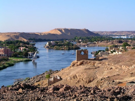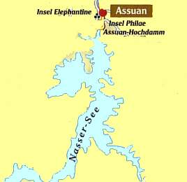 Der Endpunkt des schiffbaren Nils liegt hier in Assuan. Hinter den Katarakten befindet sich der Assuan-Hochdamm, der "Sadd el Ali", ein eindrucksvolles Werk der modernen Technik, das den Nil aufstaut und das Ökosystem der gesamten oberägyptischen Region verändert.