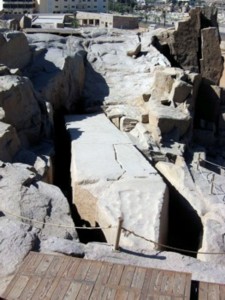 Auf dem rechten Bild ist die Spitze des unvollendeten Obelisken aus dem Steinbruch v. Assuan zu sehen. |