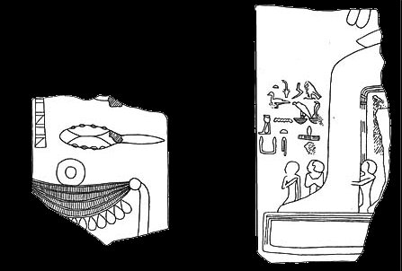 | Zeichnung u. Rekonstruktion nach R. Weill und W. S. Smith: A history of Egyptian Sculpture and painting in the Old kingdol 1946, fig. 48, 50-53 |