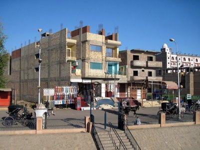 - Bild: Peter Alscher, Kümmersbruck -Der Nil ist ebenso wie schon in der Antike wichtigste Verkehrsader für Edfu. Auf diesem verkehren die für den Tourismus wichtigen Nilkreuzfahrtschiffe von Luxor nach Assuan und auch der Frachtverkehr nach Unterägypten wird über den Fluss abgewickelt. Entlang des östlichen Randes der Stadt befinden sich die Anlegestellen für die Nilkreuzfahrtschiffe.