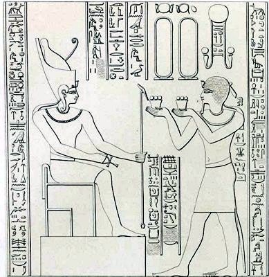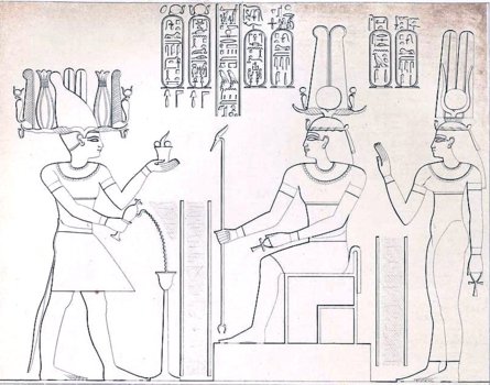 Bild) bei Opferdarstellung an Osiris und Isis (nicht im Bild) Thot und