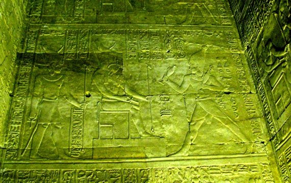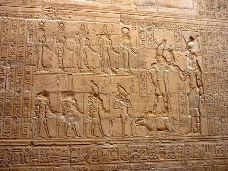 Aufgrund der vollständigen und ziemlich gut erhaltenen Beschriftung vieler Wandflächen im Edfu-Tempel ist die Forschung über die Funktion eines jeden Raumes und auch des Ablaufs des dort abgehaltenen Kultes genauestens informiert. Zum Beispiel wissen wir, dass im Jahr 142 v. Chr. die "Krönung des Falken" am 25. Jan., der "Sieg des Horus" am 17. März, die "heilige Hochzeit von Horus und Hathor" am 8. August und das "Neue Jahr " am 22. September begangen wurden.