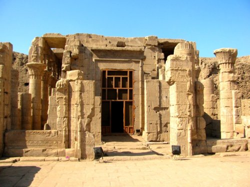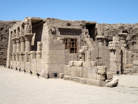 Die "Götterwohnung des Horusfalken" war bis zu ihrer Freilegung im Jahre 1860 zum Teil unter Schutt und Sand verborgen. So geschützt, überlebte dieser Tempel die Jahrhunderte in einem guten Erhaltungszustand.
