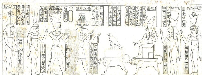 (Quelle für diesen Text ist: Zeitschrift Sokar Nr. 16, 2008, Hgb. Michael Haase - Inschriften des ptolemäerzeitlichen Tempels von Edfu - das Edfu-Projekt, Andreas Effland/Martin von Falck/Jan-Peter Graeff, S. 80-83 u. dt. Wikipedia wie auch Denon, V., Mit Napoleon in Ägypten, 1789-99, Tübingen 1978, Kurth, The Temple of Edfu, S. 38 f)Durch den verschütteten Zustand des Tempels wurde nicht nur die Besichtigung für die frühen Ägyptenreisenden erschwert, sondern machte auch die wissenschaftliche Erforschung recht schwierig. 1842-45 besuchte Karl-Richard Lepsius, der Leiter der preußischen Expedition, Ägypten und entdeckte bei seiner Besichtigung des Edfu-Tempels die Hieroglyphen auf der Umfassungsmauer. Erst nachdem er einen Teil des hohen Schuttberges abräumen ließ, war es ihm möglich, die ersten Abschnitte eines längeren Textes zu kopieren (siehe Lepsius Denkmäler S. 56 ff) - Bilder siehe weiter unten.