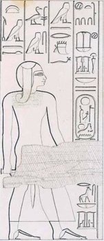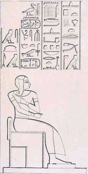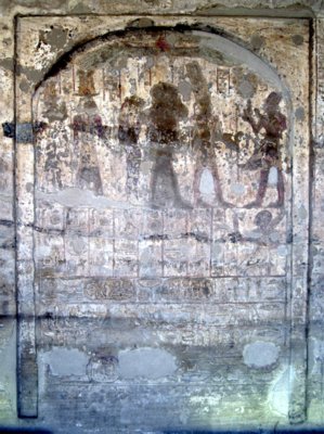 Lt. Porter und Moss (4) befindet sich in der linken Nische neben dem Haupteingang eine Darstellung des Prinzen Chaemwese als Sempriester, mit einer Inschrift über das 1. Sedfest im 30zigsten Regierungsjahr seines Vaters Ramses II.