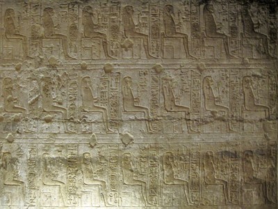 Die Seitenwände des Sanktuars zeigen die Namen und Figuren von 61 Gottheiten.