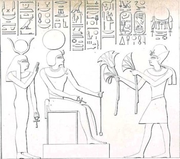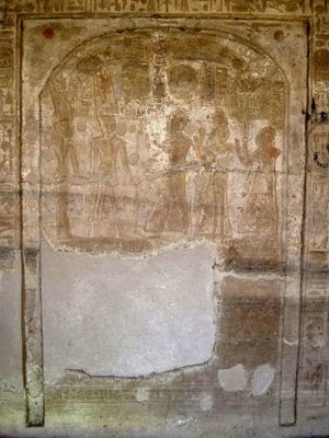 PM 2:       Über dem zweiten Durchgang: Ramses III. evtl. mit Oberägyptischer Krone auf dem Kopf, gefolgt