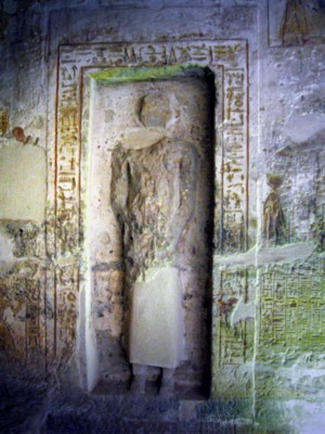 In der Nische steht eine halbplastische Statue, die einen hohen Beamten darstellt. Hierbei könnte es sich evtl. um den oben dargestellten Pairi oder auch um Prinz Chaemwese, den Sohn Ramses II., handeln. Diese halbplastische Statue wird leider weder von Porter & Moss noch von Lepsius beschrieben.