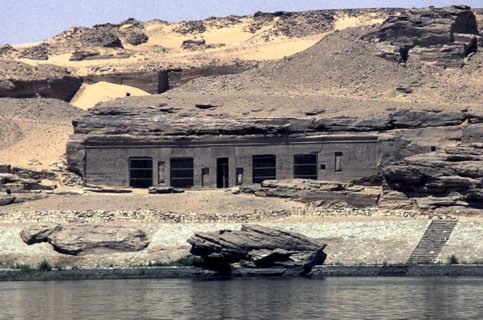 Felskapelle des Haremhab auf dem Westufer des Gebel el-Sisila vom Nil aus gesehen
