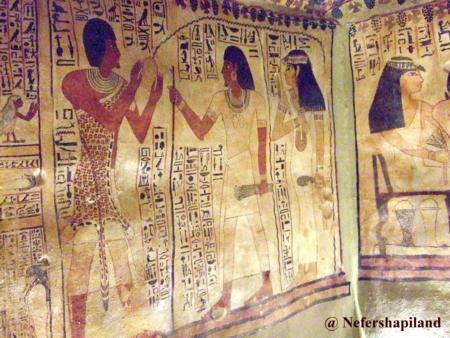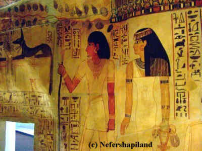 Mundöffnungsritual Der Grabherr und seine Gattin im hinteren Teil der Grabkammer - Ostseite - (Bild: Nefershapiland 2007) |