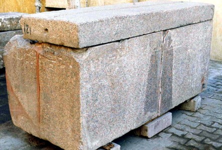 unbekannten Gottheit gehört. Die Fragmente aus Kalzit-Alabaster wurden von