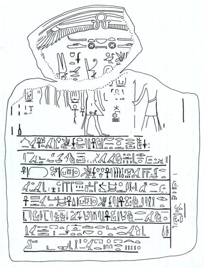 Fotografie und Umzeichnung der Stele aus Wadie Halfa neu gefundenes Fragment von Emery