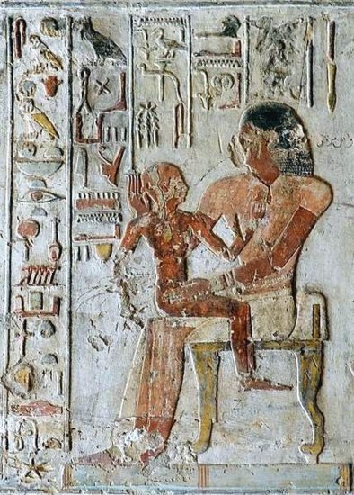 - Prinz Wadjmose sitzt auf dem Schoß von Paheri -