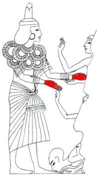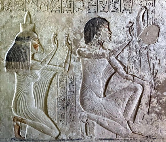 Über den königlichen Beamten die Neferhotep die Ketten umlegen (oben) steht in einer Inschrift: