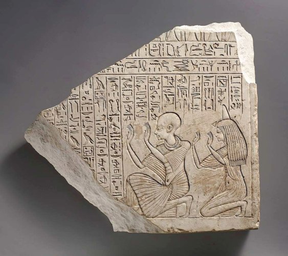 Gefunden wurde diese Votivstele aus Kalkstein von Userhat und seiner Frau Nefertari in Deir el-Bahari, Tempel des Mentuhotep II. (Ausgrabung des Egypt Exploration Society 1905).