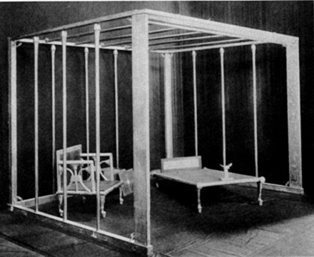 verbunden war. Das Bett war - mit Ausnahme der löwenbeinigen Abschlüsse