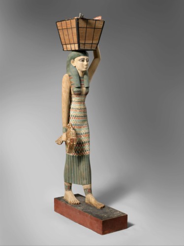 Diese Opferprozession sticht unter den hundert Holzmodellen, die man im Grab von Djehuti-nacht verstreut gefunden hatte, besonders hervor. Die Kunstfertigkeit und Feinheit der Schnitzerei und Bemalung machen sie zu einem der schönsten Holzmodelle, die je in Ägypten gefunden wurden. Sie zeigt einen Mann und drei Frauen, die Opfergaben darbringen, um den Ka des Djehute-nacht im Jenseits zu stärken. Jede Figur schreitet mit dem linken Bein voran. Ein Priester führt den Zug an und trägt einen zeremoniellen Weinkrug und ein Räuchergefäß für die Bestattungsriten. Zwei Frauen folgen mit Speise und Trankopfern. Die ersten beiden Frauen tragen Brot und Ernteerzeugnisse sowie einen Korb mit Bierkrügen. Die dritte Frau bringt Gegenstände für die persönliche Pflege des Grabeigentümers: einen kleinen hölzernen Kosmetikkoffer und einen Spiegel, der in einem Etui aus Tierhaut über ihrer Schulter hängt.