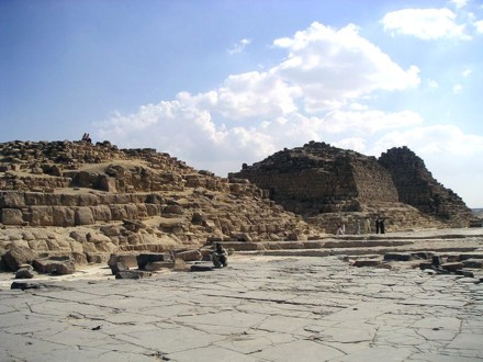 An der Ostseite der Cheopspyramide standen vier kleine Nebenpyramiden, von denen heute noch drei zu erkennen sind.