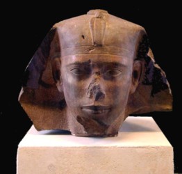 Der Kopf weist Beschädigungen an Nase, Mund und Kinn auf, ansonsten scheint er gut erhalten. Er zeigt einen König, der eine Löckchenperücke trägt, darüber ein Stirnband mit Uräus. Die Identität des Königs, den dieser Kopf darstellt, ist in letzter Zeit heftig diskutiert worden. E. Russmann sieht in dem Köpfchen König Cheops, während K. Finneisen und D. Wildung in ihm eher ein Bildnis von König Niuserre aus der 5. Dynastie vermuten (auch dieser wurde ohne Bart dargestellt). Von Rainer Stadelmann kommt der Hinweis, dass die Uräusschlange auf der Stirn des Königs (so wie sie hier zu sehen ist), erst seit der Regierungszeit König Chephren belegt ist. *** |