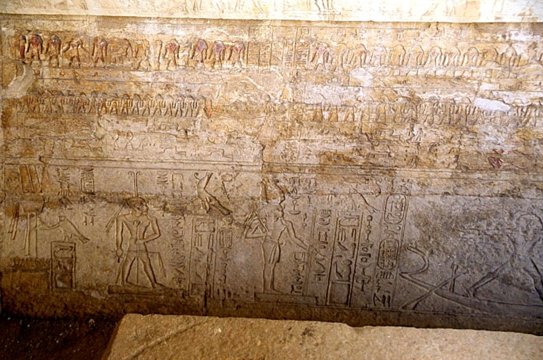 Südwand mit Darstellungen einer Reise der Sonnenbarke durch die Unterwelt.