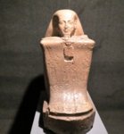 Die Kartusche von König Schoschenq III. befindet sich auf der Rückseite der Statue - direkt unter der Perücke: