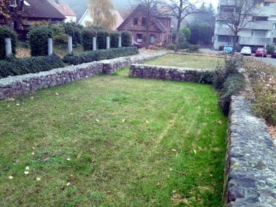 heute die Lage seiner 1,85m breiten Fundamente in der archäologisch