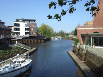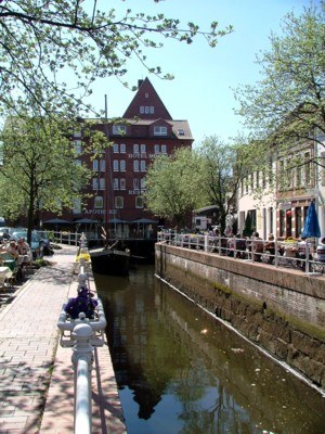 neuen grachtenartigen Flethanlage durch die Stadt geführt. Die damalige