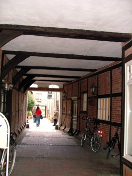 Gängeviertel des Stavenort durch ein niedriges Tor zum Ostviver, wo die