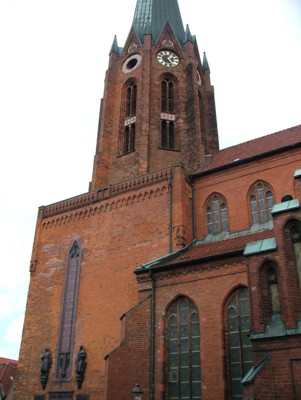 Stadtbesichtigung - der dreischiffigen Backsteinkirche St. Petri zuwendet,