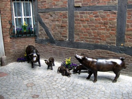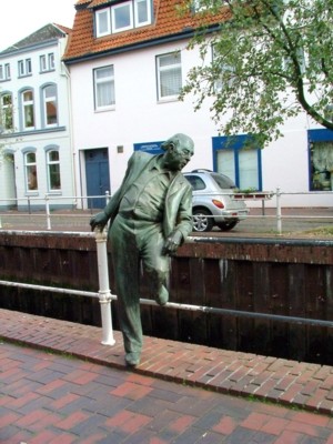 13. Jahrhundert die Stadt gründeten. Es heißt, dass in Buxtehude die Glocken schon mit dem Seil geläutet wurden, als sie woanders noch mit dem Hammer geschlagen wurden. Auf niederländisch heißt der Begriff "Glocke läuten" = Hunte bellen". Das Seil hatte große Ähnlichkeit mit einem Schwanz. Der Sinn der Worte ging verloren, ihr Klang blieb. Deshalb bellen in Buxtehude heute die Hunde mit dem Schwanz. (Nachzulesen auf einer Bronzetafelinschrift vor dem Hundedenkmal an der Buxtehuder Sparkasse)Das volkstümlich überlieferte Märchen vom Wettlauf zwischen Has' und Igel erschien schriftlich zuerst auf Plattdeutsch, geschrieben von Wilhelm Schröder (1808-1878) und wurde 1843 von den Gebrüder Grimm in den Kindern- und Hausmärchen aufgenommen. Dieses volkstümliche Märchen handelt von dem Wettlauf zwischen dem Hasen und dem Igel. "Ick bün all hier". Der Igel empfängt den abgewetzten Hasen mit stolz geschwellter Brust am Ziel. Zum wiederholten Male musste sich Meister Lampe dem cleveren Igel geschlagen geben - jedes Mal stecke er eine Niederlage gegen den Igel ein - oder besser gesagt: gegen die Igel, denn es sind zwei Igel, gegen die er antritt. Allerdings denkt Meister Lampe, es wäre jedes Mal der gleiche Igel, gegen den er läuft. Der Hase ist zwar schneller - der Igel allerdings cleverer!